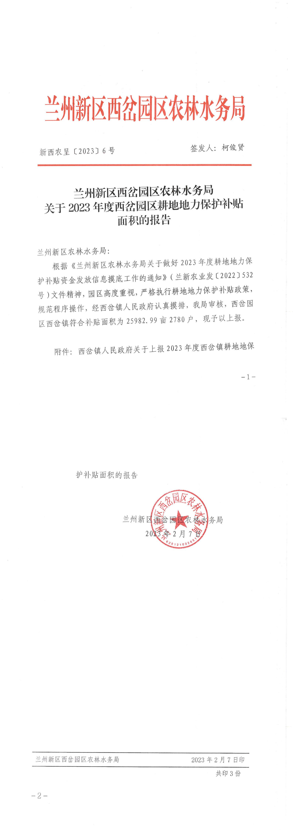 附件:蘭州新區(qū)西岔園區(qū)農(nóng)林水務局關于2023年度西岔園區(qū)耕地地力保護補貼面積的報告.pdf