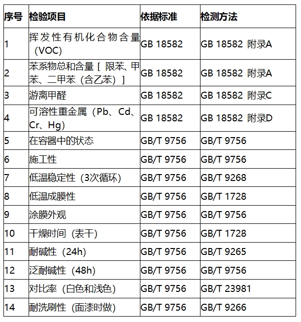 合成樹脂乳液內墻涂料檢驗項目、依據(jù)、方法
